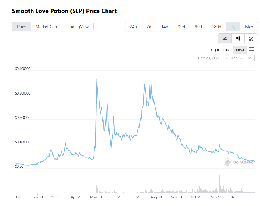 Because NFTs are digital items, not money, many games that feature NFTs actually reward players with a different form of crypto – tokens. Axie Infinity, for example, rewards players with Smooth Love Potion (SLP) tokens. But tokens are often tied to the success of that one game and their price depends on more and more new players coming in, swelling demand. You can earn quite a bit with tokens, but you need to get in and out during the right parts of the market cycle. Get in early and cash out at the top.